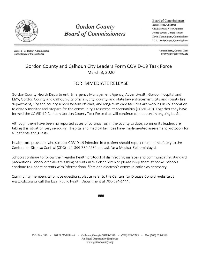 March 4, 2020 835 × 1080 Press release – March 3 2020 Coronavirus