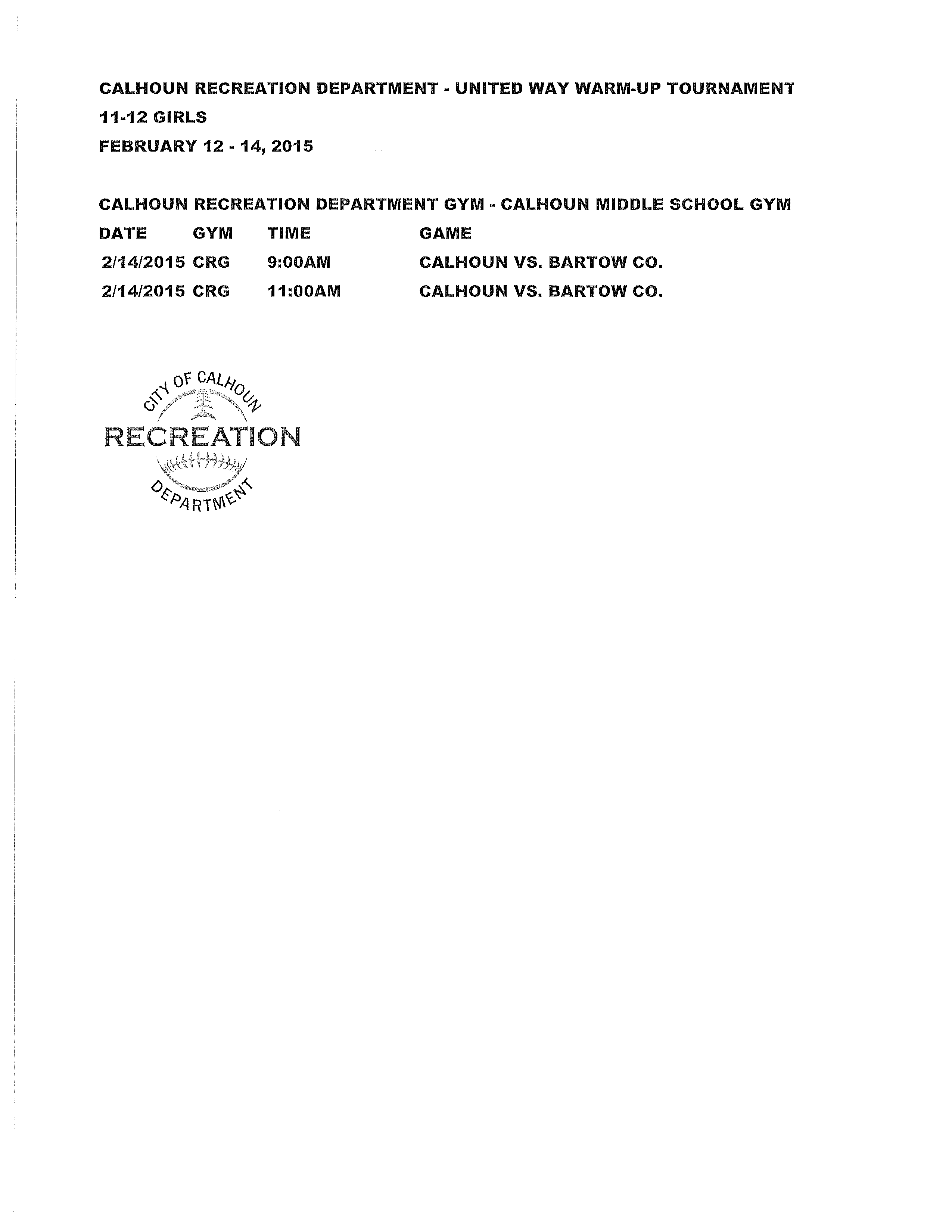 11-12 Girls United Way Warm-Up Tournament Schedule February 9, 2015 2550 × 3300 11-12 Girls United Way Warm-Up Tournament Schedule